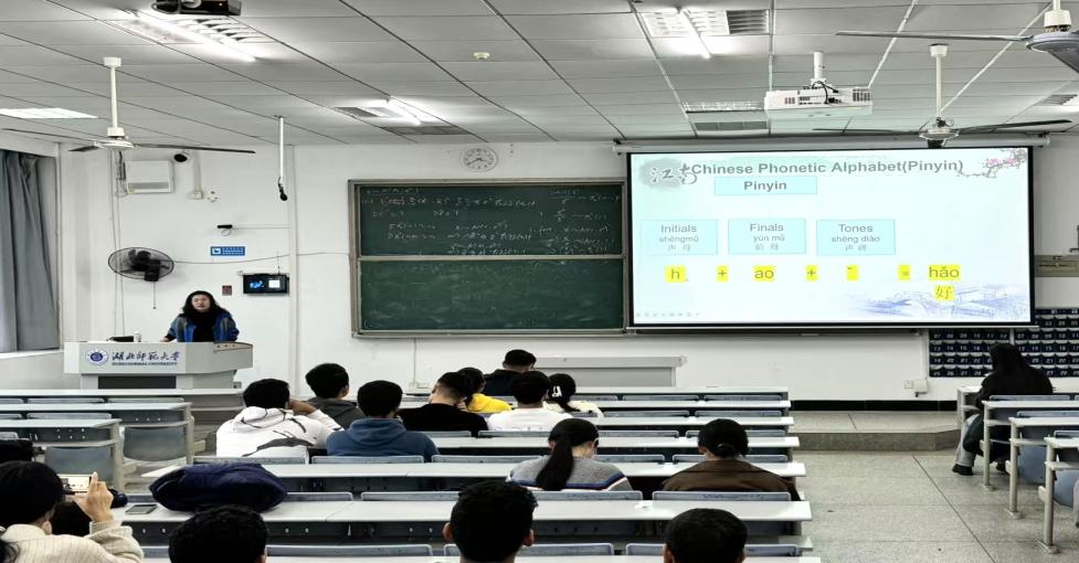15:30-17:00,新生入学专业素养教育活动在科技大楼9504教室开展,覆盖2025级留学新生3个班级。文学院胡璇老师担任主讲人,国际教育学院副院长余松林老师、国际处副处长曹建芳老师及学院辅导员、兼职辅导员全程参与。胡璇老师以拼音发音技巧、拼读规律为核心展开教学,通过趣味提问、上台演示与新生积极互动,课后还针对个体发音困惑耐心答疑;随后余老师在活动中特别强调中文学习对留学期间生活交流、专业学习的重要性,进一步激发新生学习动力。