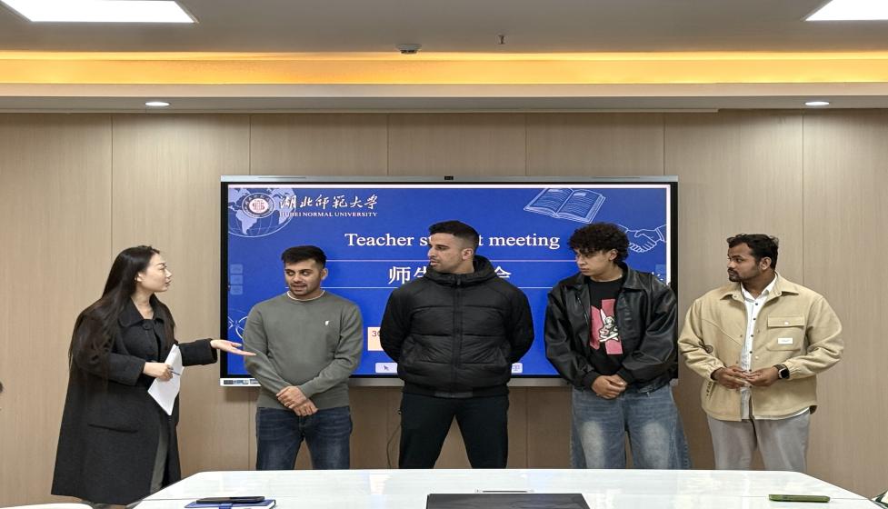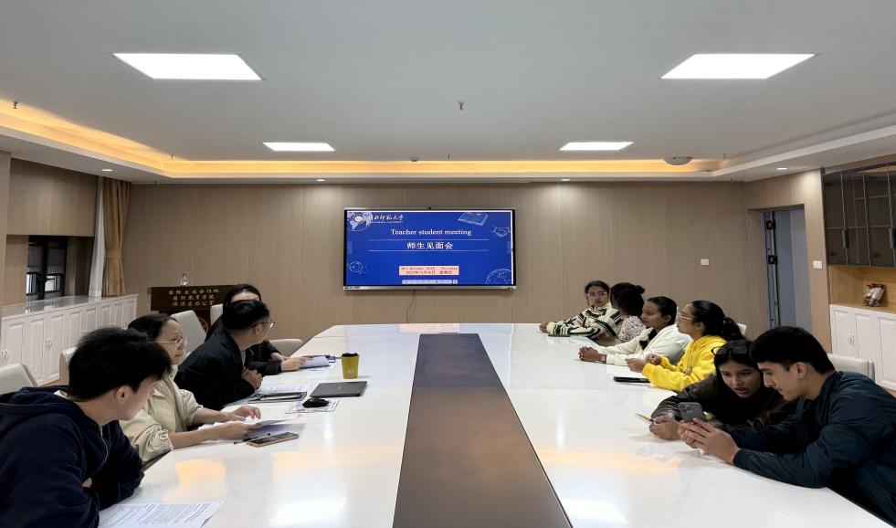 14:30-15:30,师生见面会在资环大楼5楼7521大会议室举行。会议由辅导员孙悦老师主持,国际处副处长、国际教育学院副院长余松林老师及各班班主任参加本次会议。