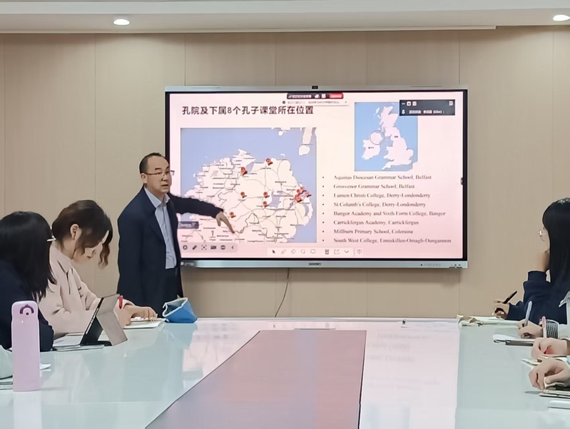1029日的培训中,文学院党委书记车录彬介绍了奥斯特大学北爱尔兰孔子学院的基本情况,并就面试流程与技巧进行了专业指导。外国语学院徐小容副教授则围绕国际中文授课技巧展开教学示范,结合真实课堂案例,提升了学员的教学设计与课堂掌控能力。
