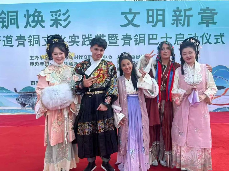 近日,湖北师范大学国际教育学院组织留学生群体参与青铜文化实践暨青铜巴士启动仪式,同学们在沉浸式体验青铜文明魅力后,身着传统汉服参与文化游行,在“情景体验”中搭建跨文化桥梁,以“多元视角”感受中华优秀传统文化的深厚底蕴,一场别开生面的文化互动在校园内外温情上演。
