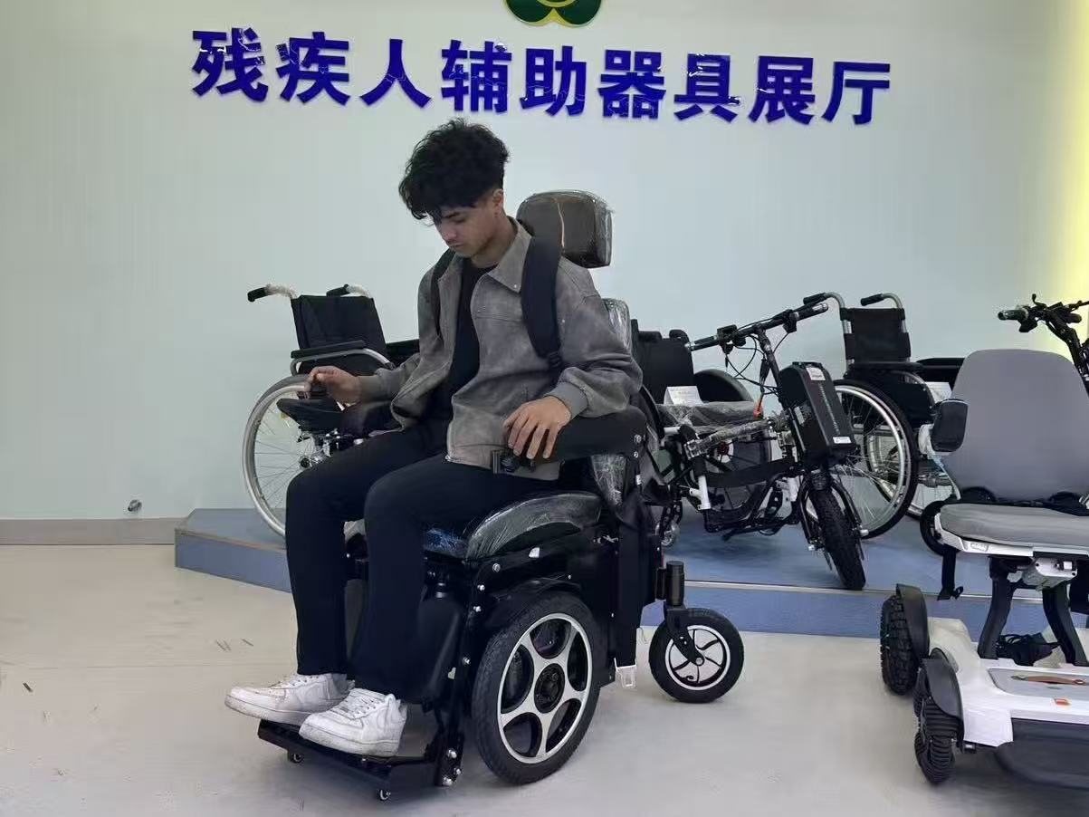 体验环节是本次活动的高潮。来自湖北师范大学国际教育学院的留学生们,在技术人员和社区工作人员的指导下,不仅好奇地观摩,更是亲自坐上智能轮椅进行体验,尝试操作各种便捷助行器。他们与现场的残疾朋友结成搭档,一边交流使用感受,一边分享各自国家的见闻。