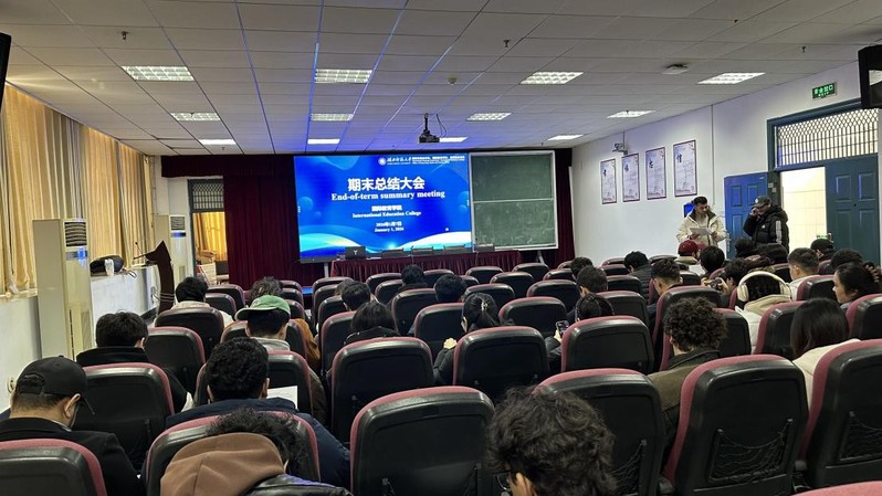 为总结本学期各项工作,部署寒假相关事宜,筑牢校园安全防线,1月7日下午,国际教育学院期末总结大会顺利召开。会议由辅导员孙悦主持,国际教育学院院长龚波、各班主任及教学办李欣老师出席,全体留学生参加此次大会。