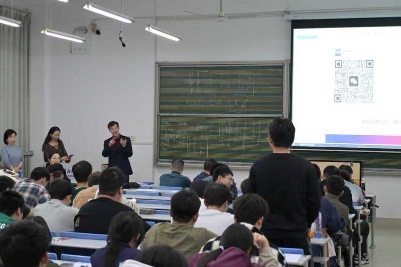 活动伊始,物理与电子科学学院副院长田开坤教授致辞。他对新生的到来表示热烈欢迎,并简要介绍了学院的发展与专业前景,鼓励同学们珍惜中外合作办学提供的优质平台,充分利用两校资源,规划好充满挑战与机遇的大学四年。随后,与会师生共同观看了美国菲迪大学的宣传视频,直观地了解了合作大学的校园环境、教学实力与文化氛围。菲迪大学中国成都办公室执行理事Dan Plaut先生为同学们做了详实的项目宣讲,就项目模式、课程衔接、专业特色等进行了深入讲解。