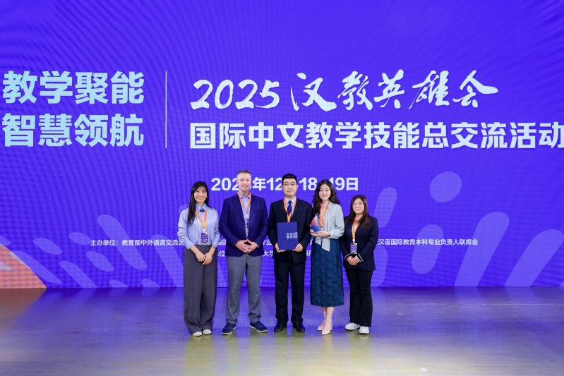 1218—19日,2025汉教英雄会国际中文教学技能总交流在北京外国语大学举行。我校外国语学院周建宇、徐小容、外教肖恩·坎宁安与文学院黄景兰,王路成组成的湖北师范大学团队,荣获最佳教学创意团队。这也是该项赛事自2016年举办以来我校首次晋级总交流阶段并获奖。