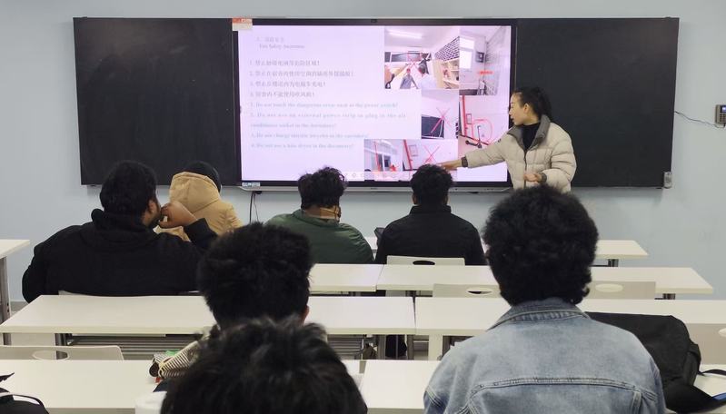 随后,班主任围绕多项安全重点展开深入宣讲。在宿舍安全方面,重申严禁使用大功率电器、严禁明火照明、严禁吸烟等管理规定,要求学生严格遵守作息时间,按时归寝,夜间保持宿舍区域安静,共同维护安全、整洁、有序的住宿环境。交通安全是本次班会的重点强调内容,班主任结合近期发生的一起留学生交通事故案例,以案释法、以案警示,提醒学生必须严格遵守中国道路交通法规,骑乘电动自行车时务必规范佩戴安全头盔,出行优先选择公交、城轨等正规交通工具,切实做到对自身和他人的安全负责。