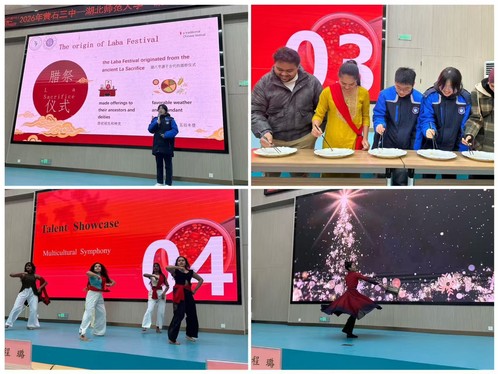 腊月初八寒意浓,校际情谊暖人心。2026年1月26日,值此腊八佳节之际,湖北师范大学国际教育学院组织留学生队伍赴黄石三中,联合开展“腊八共暖,互鉴互融”文化交流活动。国际教育学院院长龚波、副院长余松林带队,辅导员孙悦、班主任袁世湛一同参加,中外学子齐聚一堂,在传统民俗体验与跨文化互动中,共赴一场温暖的冬日之约。