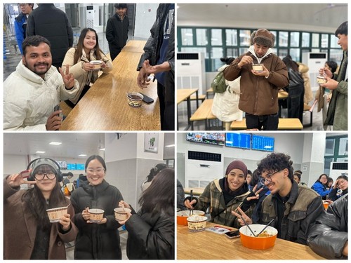 活动尾声,大家移步至餐厅,一碗碗热气腾腾的腊八粥早已熬煮就绪。糯米、红枣、桂圆、莲子等多种食材熬制而成的粥品香甜软糯,氤氲的热气中,中外学子围坐一桌,边品尝美食边畅谈活动感受,语言的隔阂在真诚的交流中消弭,友谊的种子在温暖的氛围中悄然生长。“这是一次难忘的体验,腊八节非常有意义,祝大家腊八节快乐!”留学生周彬的感言道出了所有参与者的心声。