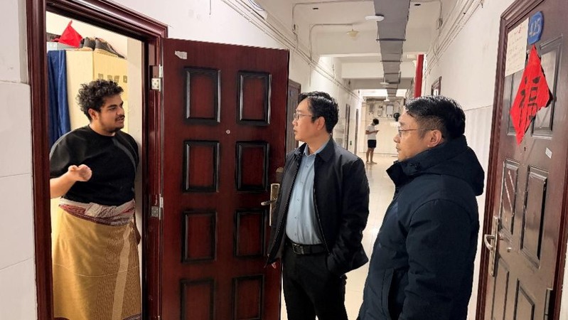 为切实筑牢留学生宿舍安全防线,全面掌握留学生返校情况,传递学校对国际学子的深切关怀,3月1日,国际教育学院院长龚波一行深入留学生宿舍,开展开学慰问检查工作,并与在校留学生亲切交流,扎实推进新学期留学生管理服务工作。